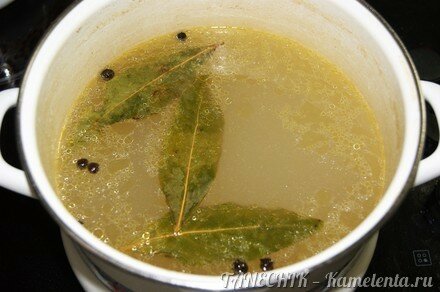 Итак, приступим. В кипящий бульон добавить душистый перец и лавровый лист (я его промываю предварительно).