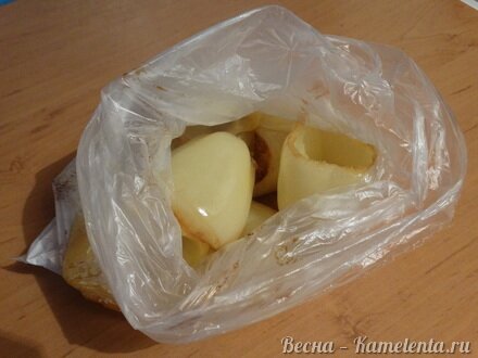 Горячие, запеченные перцы выложить в полиэтиленовый пакет, завязать у основания и дать им полежать минут 15.