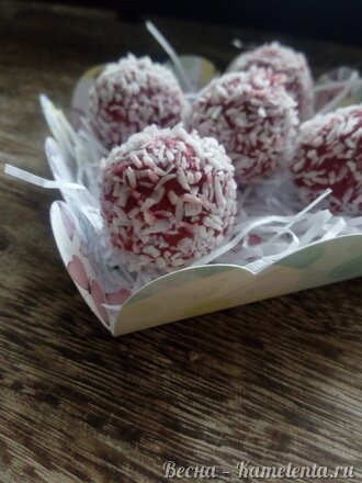 Теперь можно катать конфеты, обваливая их в кокосовой стружке.