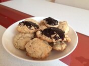 Орехи я использовала грецкие, но подойдут также миндаль, фундук. Яблоко у меня кисло-сладкое, плотное - зимний сорт. Если Вы не любитель корицы, можно заменить ее на ванильный сахар. У меня получилось 15 печений среднего размера.