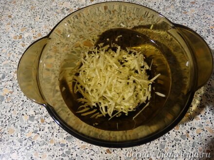 Чеснок натереть на мелкой тёрке.